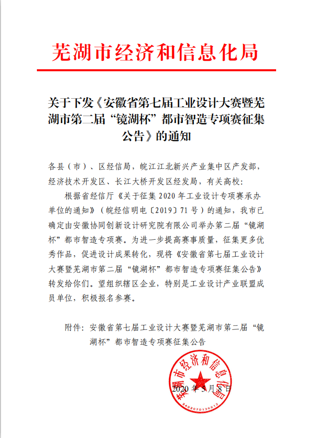 為進(jìn)一步加快蕪湖市現(xiàn)代制造產(chǎn)業(yè)的升級轉(zhuǎn)型,加速工業(yè)設(shè)計與制造的融合,培養(yǎng)工業(yè)設(shè)計人才,決定舉辦安徽省第七屆工業(yè)設(shè)計大賽暨蕪湖市第二屆“鏡湖杯”都市智造專項賽。